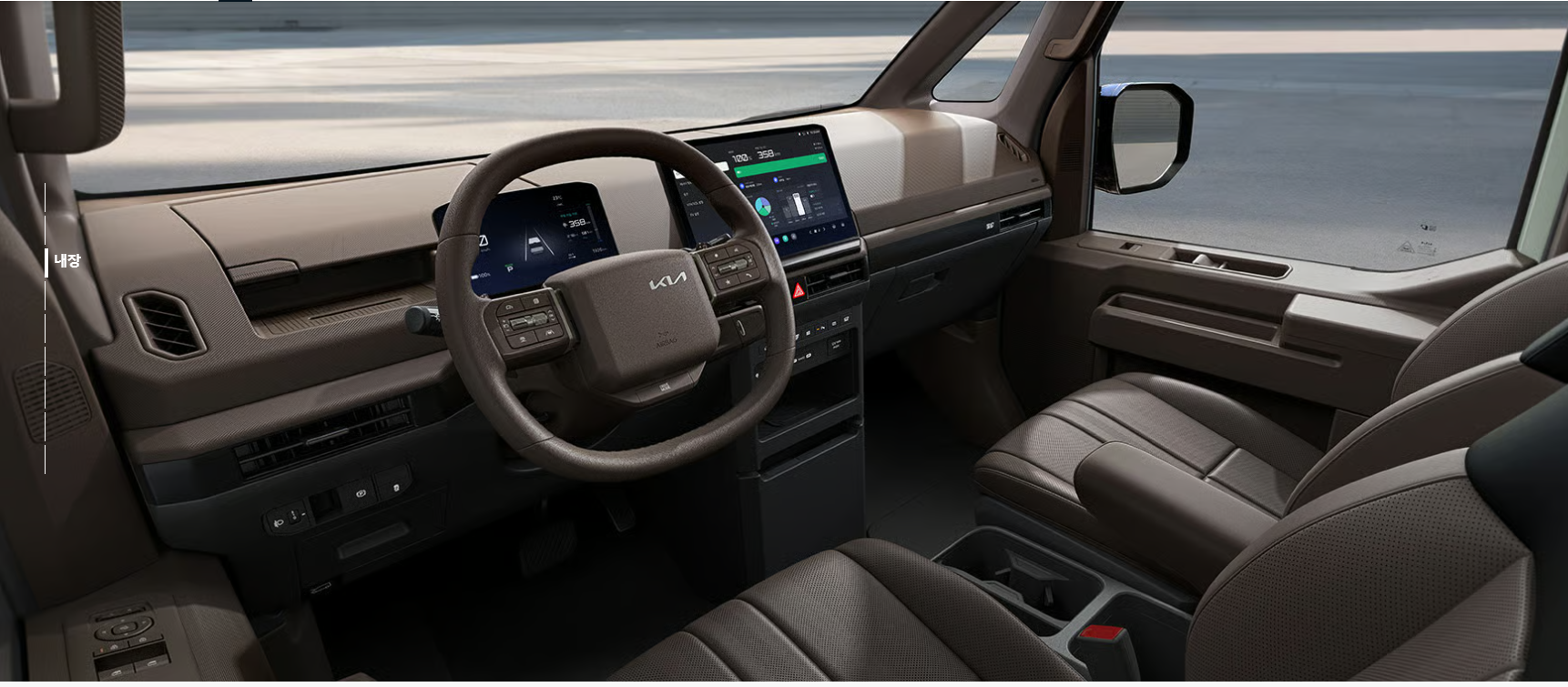 PV5의 실내는 실용성을 극대화하면서도 따뜻하고 섬세한 디자인 요소를 갖췄습니다. 값비싼 소재가 아님에도 불구하고 색상 조합과 마감 처리에서 고급스러움을 느낄 수 있으며, 특히 운전석과 뒷좌석 모두 놀라운 수준의 개방감과 편안함을 제공합니다.