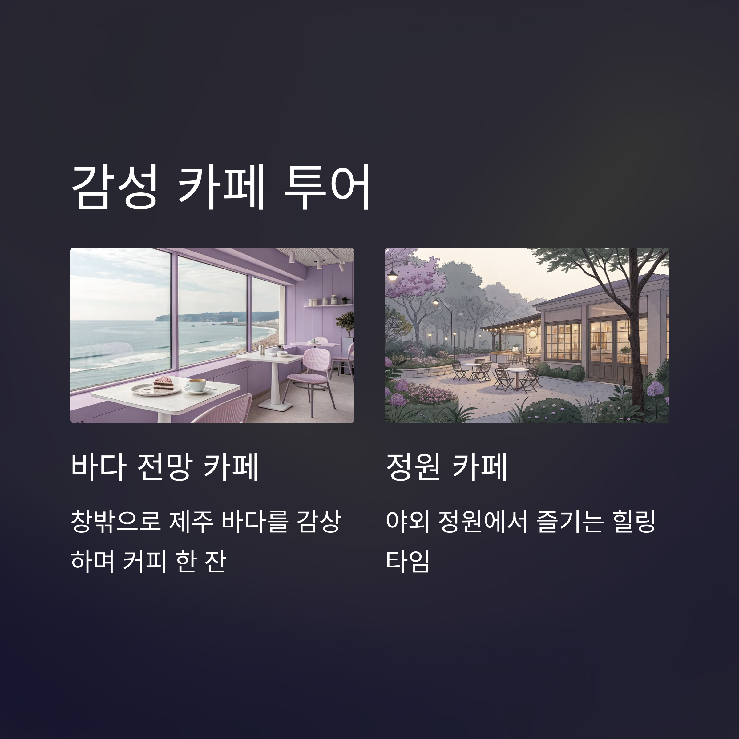 | 제주 바다와 어우러진 힐링 장소 | 인생샷 건지기 좋은 뷰 포인트 | 둘만의 시간을 위한 힐링 공간 |